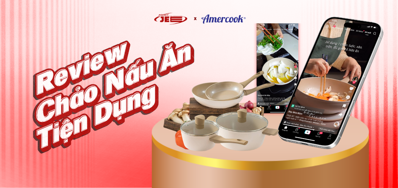 Đội ngũ Jee Agency triển khai chiến dịch cùng tệp KOL/KOC chuyên về nấu ăn và lifestyle tại nhà, tập trung vào nội dung thực tế, dễ tiếp cận, thể hiện tính tiện dụng, độ bền và công năng vượt trội của sản phẩm trong quá trình sử dụng hàng ngày.